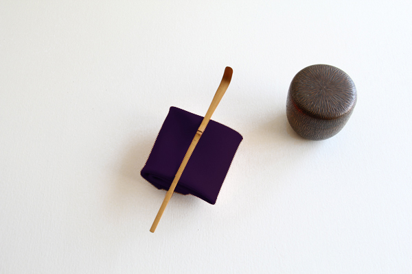点前中、茶杓や茶器などの道具を拭き清めるために使い、その所作を「帛紗さばき」と言います。
