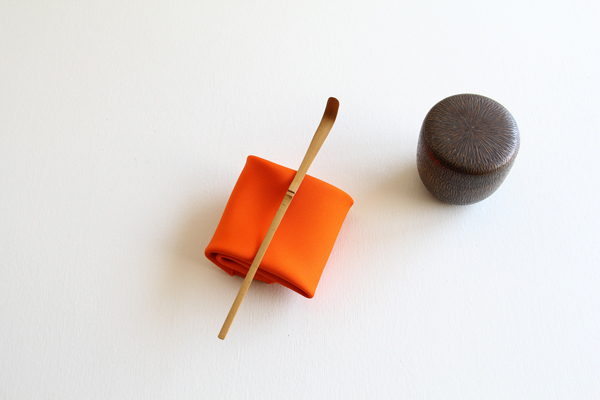 点前中、茶杓や茶器などの道具を拭き清めるために使い、その所作を「帛紗さばき」と言います。